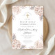 Pies florales roses modifiables Croix d'or Religieux Sainte Communion Invitation Carte Modèle
