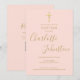 Invitation Croix dorée baptême baptême code QR rose blush