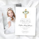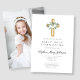 Invitation photo personnalisée White Floral Cross Girl First Communion Photo Invitation.