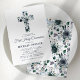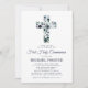 Une élégante première invitation à la communion sainte avec un simple arrière - plan blanc qui peut être changée en n'importe quelle couleur, une croix religieuse florale d'aquarelle bleue, et un modèle moderne facile à personnaliser.