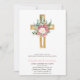 Elégante croix d'or, fleurs sur arrière - plan blanc.