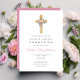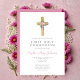 Invitation de première communion de fille de croix florale mignonne personnalisée.