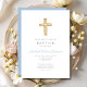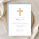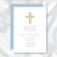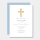 Invitation Croix religieuse Bébé Bleu Script Garçon Baptême