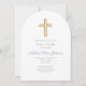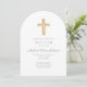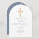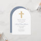 Personnalisé Religieux Croix Dusty Bleu Script Boy Baptême Arch Invitation.