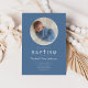 Personnalisé Blue Modern Religious Cross Photo Boy Baptism Invitation.