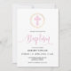Invitation Croix rose et Faux Gold Frame Baptême
