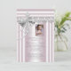 Pink photo first communion invitations with lace swirls and pearly cross on a beautiful gray and pink lace background. This pretty pink photo firfirst communion is easily customized for your event by adding your event details, style, font size & color, and wording. You can crop your photo and move the frame to wherever you need, as we make it smor larger. This a printed design with no real ribbons, bows, pearls, glitter, etc.