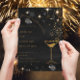 Elegant and stylish invitation card for a cocktail-themed party. Featuring a sophisticated black background with shimmering gold accents, sparkling stars, and a classy cocktail glass illustration, perfect for upscale corporate or social events.