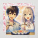 Adorable couple anime mangeant des sushi ensemble entouré de coeurs d'aquarelle mignons. Carte personnalisée de la Saint Valentin remplie de puns sushi comme "wasabi my valentine and I love you soy beaucoup."