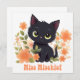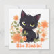 Un chaton caricaturale mignon avec des fleurs de printemps vives.
