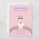 Carte d'invitation à la fête d'anniversaire kitticorn mignonne. Le mignon kitticorn est au-dessus d'un arc-en-ciel sur arrière - plan rose. Sur la partie arrière se trouve une grande étoile avec le numéro cinq. Le texte et le numéro sont prêts à être personnalisés pour célébrer l'anniversaire d'un garçon ou d'une fille.