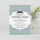Baby shower mignon moustache bash invitation avec une moustache noire sur un cadre moderne avec un arrière - plan zigzag de chevron bleu et noir. Retournez notre petit garçon, petit baby shower homme pour trouver un retour correspondant pour une touche spéciale supplémentaire.