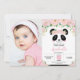 Invitation Cute Panda fête d'anniversaire rose florale photo