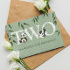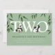 Cette invitation anniversaire de enfant contemporaine mais mignonne présente des feuilles de feuillage vert profond aquarelle encadrant le texte "DEUX" avec deux ours de panda ludiques sur un arrière - plan vert eucalyptus et un simple modèle de fête d'anniversaire qui est facile à customiser.