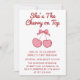 Invitation Cute Pink Bow Cherry on Top First Birthday