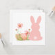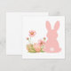 Invitation Cute Pink Easter Bunny with Spring Flowers