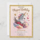 Invite friends and family to a magical celebration with this adorable pink unicorn birthday invitation! Featuring a sweet unicorn with a pastel rainbow mane, dreamy clouds, gold stars, and hearts, this invite is perfect for a 4-year-old girl's birthday party. The sparkly pink glitter border adds extra charm and enchantment. Fully customizable with your child’s name, party time, date, location, and RSVP details – it's the perfect way to start a magical day!