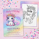 Préparez-vous à une magique fête de 9ème anniversaire avec cette invitation fantaisiste à thème de la licorne arc-en-ciel ! Doté d'une licorne de chibi pastel portant une couronne fleurie et entourée de détails scintillants, c'est la façon idéale pour les amis invitations de célébrer une fête lumineuse et colorée. Un grand "9" couleur arc-en-ciel fait apparaître la carte, plus une page de couleur unicorne bonus sur le dos ajoute une touche de plaisir supplémentaire!