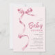 Invitation Baby shower fille à ruban rose mignonne Bow. Design dispose d'un ruban d'arc douce aquarelle, d'un arrière - plan de pois vintage chic et délicat et d'un élégant modèle de baby shower facile à customiser.