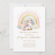Magie Invitation à votre fête avec Cute Pink Unicorn avec Rainbow Birthday Invitation! Ce design féminin est parfait pour un anniversaire fantasque, avec une licorne romantique adorable et un arc-en-ciel vibrant. Personnalisez-le avec vos détails pour une touche unique. Faites de votre fête un moment inoubliable avec cette invitation charmante et enchanteresse !
