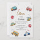 Start your little one’s big day with this adorable transportation-themed birthday invitation! Featuring cute and colorful illustrations of a school bus, fire truck, garbage truck, and even a helicopter, this fun design is perfect for toddlers and kids who love vehicles. Easily customize with your child’s name, age, and party details. Great for a truck-themed birthday party, transportation party, or vehicle birthday bash.
