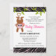 © 2012 Socialite Designs. Rose avec des rayures de zèbre noir et jolie petite fille singe design baby shower invitation. Un invitation charmant à envoyer aux invités pour célébrer la naissance prochaine d'une petite fille.