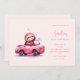Invitation Cute Sloth in a Pink Convertible Birthday