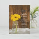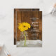 Invitez les invités à célébrer les jeunes mariés le matin après leur cérémonie de mariage avec le brunch décontracté et rustique Yellow Daisy dans le carton d'invitation Country Post Mariage, dans un style ranch personnalisé, élégant et décontracté. Cette invitation de Breakfast ou de Luncheon Après-Mariage en ranch présente une photographie florale charmante d'un pot de conserve en verre rempli d'une fleur de marguerite jaune et un fond en bois de grange brun patiné. Inspiration ou idée parfaite pour un événement de célébration de fête de grange informel. Disponible sous forme d'invitation imprimée pour envoi postal ou en téléchargement numérique pour un partage facile en ligne.