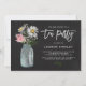Mason jar thème thé soirée invitation. Famille Invitation et amis avec cette invitation à la fête du thé à fleurs rustique. Il présente des marguerites blanches, rose rose rose et respiration de bébé dans un bocal de maçon avec un arrière - plan de tableau noir imitation. Personnalisez en ajoutant les noms, la date, l'heure, le lieu et d'autres détails. Cette invitation à la floraison est parfaite pour les fêtes du thé d'automne.