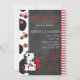 Cette invitation conçue de baby shower a un arrangement dalmatien devant la bouche d'incendie rouge et les camions de pompiers avec des emblèmes de corps de sapeurs-pompiers sont d'un côté avec la copie rouge de chevron de l'autre. Cette conception peut également être changée en célébration d'anniversaire en changeant les mots.