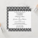 Ce faire-part de mariage formel présente un motif damassé noir et blanc élégant avec une bordure florale noire.
