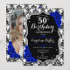 Invitation Damask Black Silver Royal Blue Photo 50e anniversa