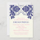 Invitation Damask bleu marine, mariage rose douche nuptiale