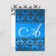 Invitation DAMASK GEM MONOGRAM bleu rsvp or