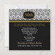 Une carte traditionnelle carrée en noir et or formel avec une garniture en damas noir et blanc et un filigrane décoratif pour TOUTE ANNÉE, vos initiales ou une date. Parfait pour une célébration d'anniversaire de noces d'or ou d'anniversaire de naissance.