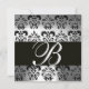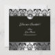 Invitation DAMASSÉ NOIR ET BLANC MONOGRAMME lune d'argent pie