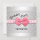 Invitation d'anniversaire gris et rose avec du texte sur le dos qui peut être customisé pour répondre à vos propres besoins