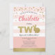 Invitation de fête thème lapin mignon rose et or pour les 2 ans de bébé fille.