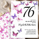 Cette jolie et fantaisiste invitation d'anniversaire 76 ans est parfaite pour une belle fête et donnera un ton amusant et festif. Ce design présente des papillons roses et violets, et est un choix féminin agréable pour un événement spécial pour célébrer un anniversaire marquant. Personnalisez pour votre propre année d'anniversaire, et recherchez "76" dans ma boutique pour voir les designs coordonnés.