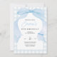 Célébrez l'anniversaire de votre enfant avec cette invitation à ruban gingham bleu. Dotée d'un design à ruban et à carreaux, ce modèle éditable est parfait pour les fêtes d'enfants et de préadolescents.