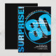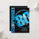 Cette invitation à l'anniversaire brillante et amusante fera connaître à vos invités la partie la plus importante, c'est une surprise! Bleu clair sur noir avec un 80 géant avec votre libellé personnalisé pour un invitation d'anniversaire surprenant gagnant. Le dos leur rappelle de briller !