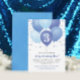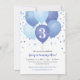 Célébrez l'anniversaire de votre chéri avec ces adorables invitations en ballon ! Avec des ballons et des confettis bleu clair et foncé, c'est parfait pour une fête d'anniversaire de petit garçon, ou pour tout enfant qui aime juste le bleu ! L'âge est modifiable sur le ballon. Back présente le thème des confettis du devant.