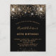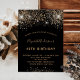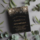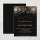 Une invitation moderne, élégante et glamour pour une fête d'anniversaire de 40 ans (ou tout autre âge). Un fond noir décoré de fausses paillettes et d'étincelles. Le nom est écrit avec un style de lettre manuscrit moderne de couleur dorée. Personnalisez et ajoutez les détails de votre fête.