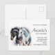 Carte postale d'invitation d'anniversaire avec une paire de chevaux noirs et blancs passant du temps ensemble. Illustré à l'aquarelle.