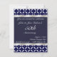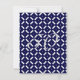 Cette belle invitation d'anniversaire est parfaite pour votre anniversaire de mariage, elle présente un motif géométrique bleu et blanc en haut et en bas. Un centre bleu uni contient du texte blanc prêt à recevoir vos informations de fête personnalisées. Des bandes argentées courent le long du haut et du bas pour lui donner de l'éclat. Personnalisez-le selon vos besoins.