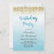 Invitation d'anniversaire avec parties scintillant or look design et ombre bleu arrière - plan d'aquarelle.