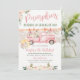 Invitation d'anniversaire Camionnette vintage rose Fille de fermier, Patch citrouille d'automne.