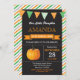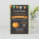 Invitation d'anniversaire citrouille. Petit Citrouille Invitation d'anniversaire d'automne. 1er premier anniversaire. Bandes orange et verte, arrière - plan en tableau noir. Pour plus de personnalisation, cliquez sur le bouton "Customiser" et utilisez notre outil de conception pour modifier ce modèle.