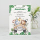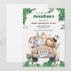 Une invitation mignonne avec un groupe d'animaux de la forêt à bord d'une voiture pour votre anniversaire. Minimalisme et esthétique