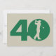 Vous pouvez personnaliser tout le texte à cette invitation orientée de fête d'anniversaire du quarantième golf. Vous pouvez changer le texte et le nombre sur l'avant et employer ceci pour un cinquantième, soixantième, soixante-dixième ou autre anniversaire. Les caractéristiques de conception une silhouette d'un golfeur balançant un club incité pour ressembler au zéro dans 40 sur l'avant. Vert et beige.
